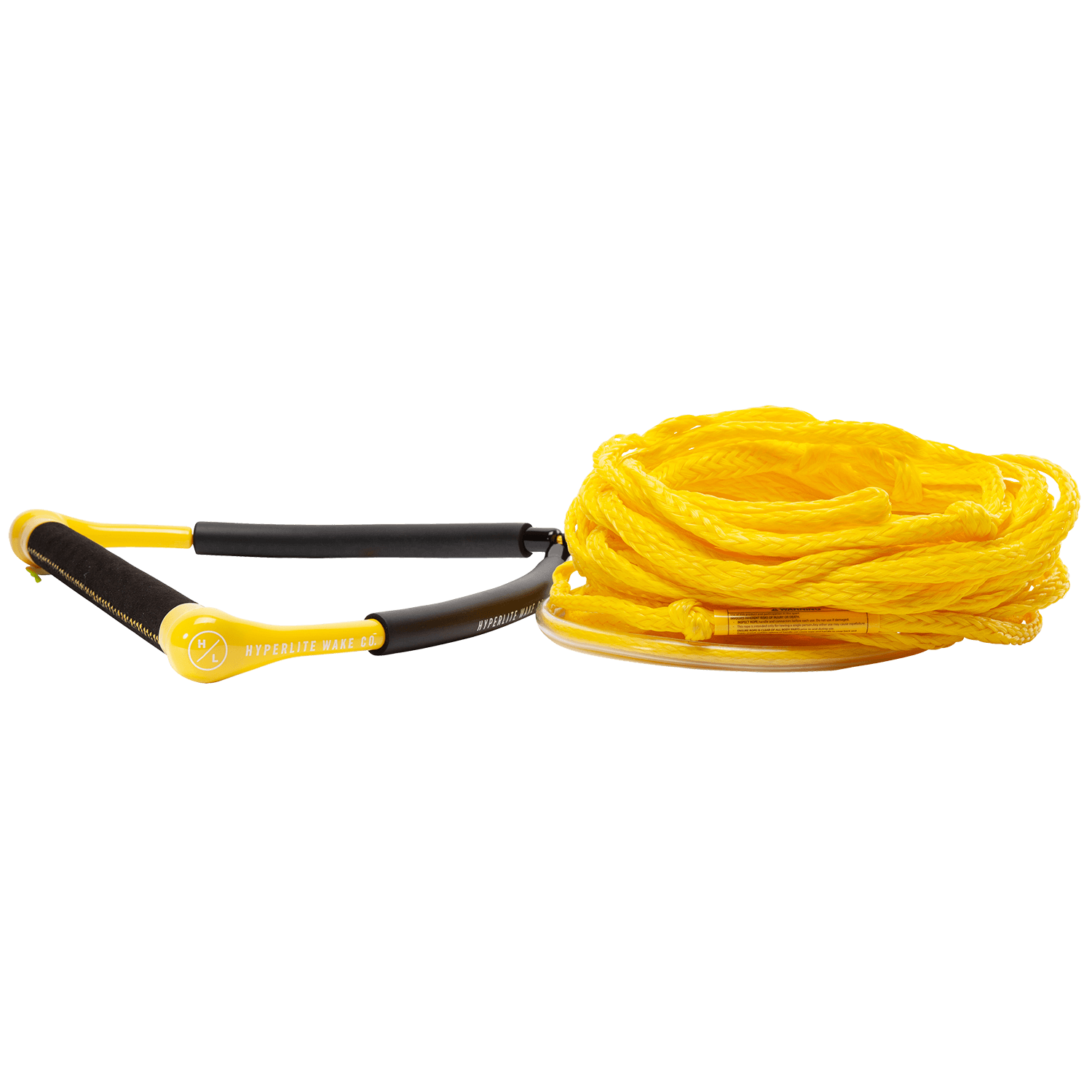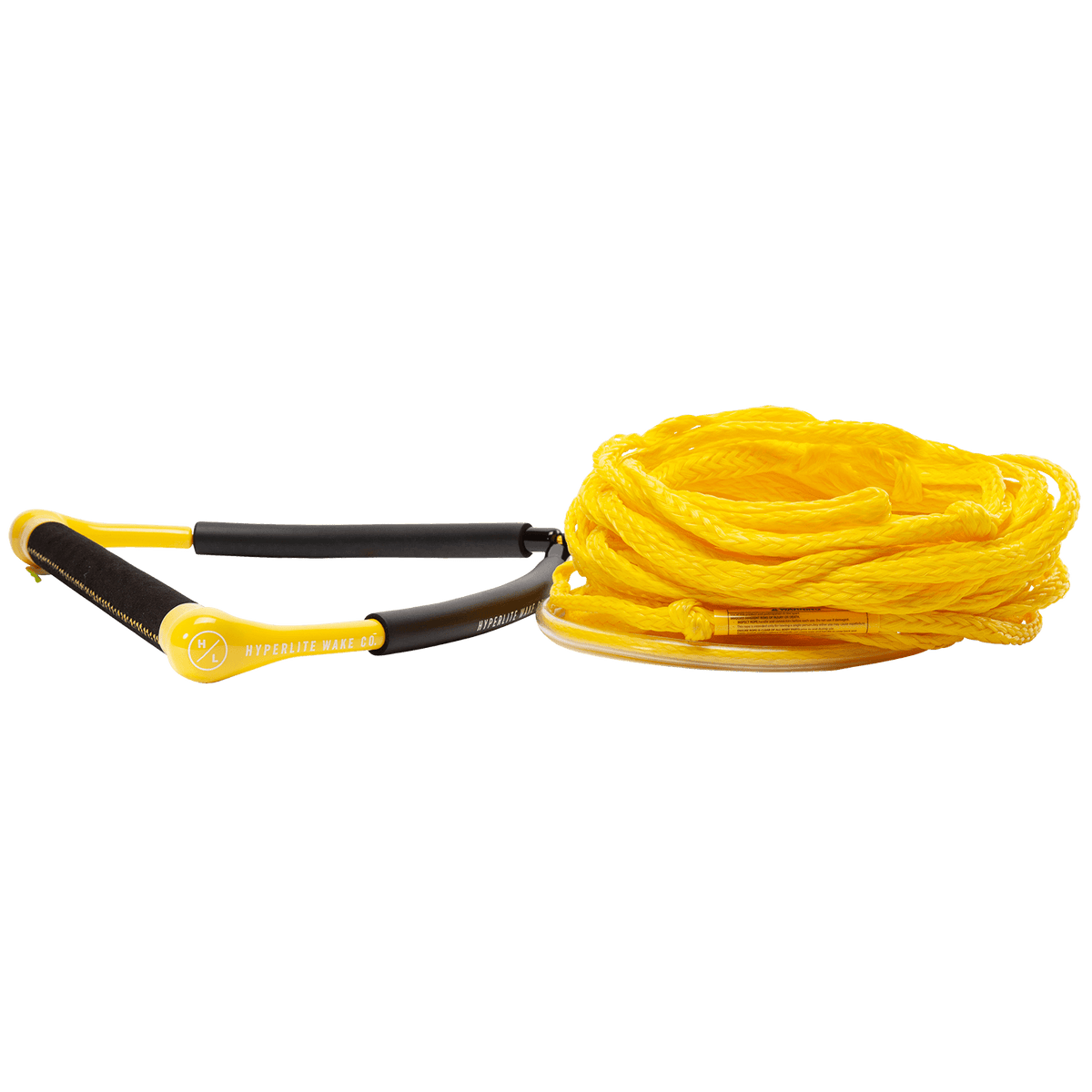The yellow CG or Chamois Grip wakeboard handle is the best value including the 60’ Poly-E Line. New handle floats were added so the entire rope & handle package floats, easily visible for wakeboarder and boat driver. Total length with handle is 65’ including 3 take off sections at 5’ each.