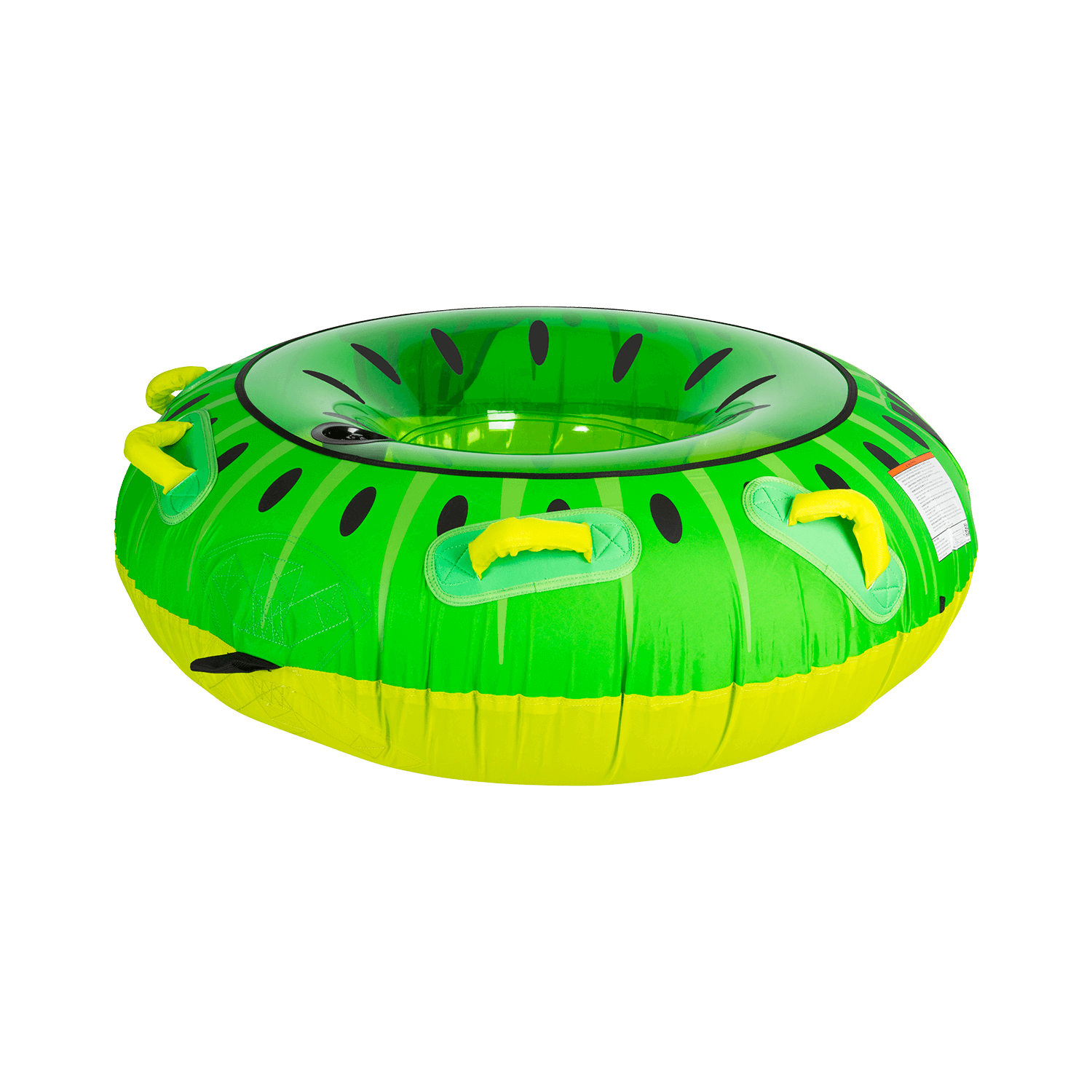 The Kiwi is a single rider, donut shaped tube that was designed with FUN in mind. Sit in the Kiwi with your feet forward or lay on your belly to put yourself in the heart of the action. The Kiwi has 2 sets of handles in just the right spot for either riding style. You will enjoy ultimate comfort with soft foam handles with built in knuckle guards. The 2-Way Boston valve makes inflation and deflation a snap and you’re sure to turn heads with this cool fruit inspired design. Get yourself a Kiwi and grab a slice of the sweet fruity fun!