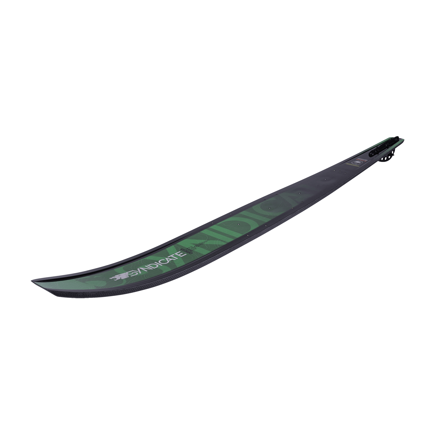 Construction: The Syndicate Omega Max Mark II is built with our proprietary Eco Performance Construction, containing 35% natural glycerin resin, a by-product of biodiesel production. This makes it quicker rebounding creating a lighter feel underfoot. Paired with our Syndicate Construction, a proprietary combination of aerospace carbon fiber and ultra-lightweight PVC Foam Core Technology for a lighter, more responsive ski that utilizes the world top materials for unparalleled performance. The ski base features Carbon Fiber Speedskin, an advanced laminar textured material to reduce ski drag & increase speed, with 20% less ski weight!