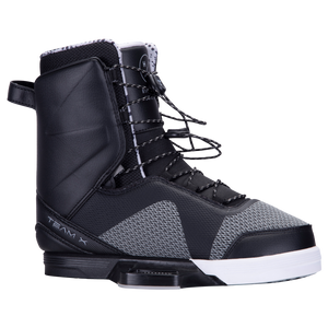 Shaun's vision for the perfect plated binding has quickly become a team favorite, the Team X Binding built atop Hyperlite's Fusion Plate System. If you're a seasoned pro or just getting comfortable standing sideways, this is the perfect binding for you. The Team X closed toe binding offers mid-range support for the rider looking for a little extra flex with solid heel hold thanks to its Internal Ankle Harness. This feature pulls the riders foot into the heel pocket as the binding is laced for reduced lift. Dual quick cinch lace zones and seamless liner construction produce a great fit with no pressure points. Shaun asked for user friendly binding for beginners and experts alike, with great performance for a great price. Grab a pair of Team X Wakeboard Binding.