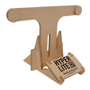 To showcase Hyperlite wakeboards & wakesurfers we’ve created this display stand. Made from wood, simply connect the 4 pieces and use the included hardware to mount the adjustable sliders. This allows for wider tails on a surfer and small widths on a wakeboard. We all dig/love our boards, grab a couple stands for the dock or living room – it’s a solid move.